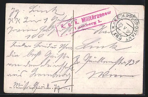 gelaufen 1916, Eckknick li. oben, guter Zustand