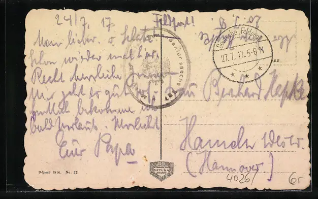 alte Ansichtskarte, gelaufen 1917, guter Zustand