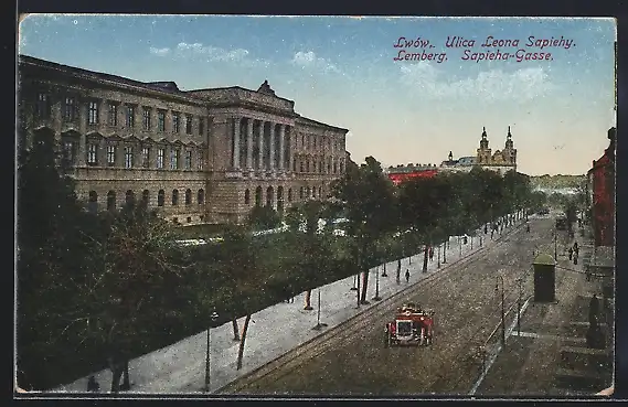AK Lemberg, Sapieha-Gasse mit Strassenbahn