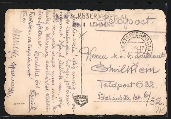 gelaufen 1917, Eckknick li. unten, guter Zustand