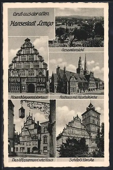 AK Lemgo, Gesamtansicht, Hexenbürgermeisterhaus, Rathaus mit Nicolaikirche