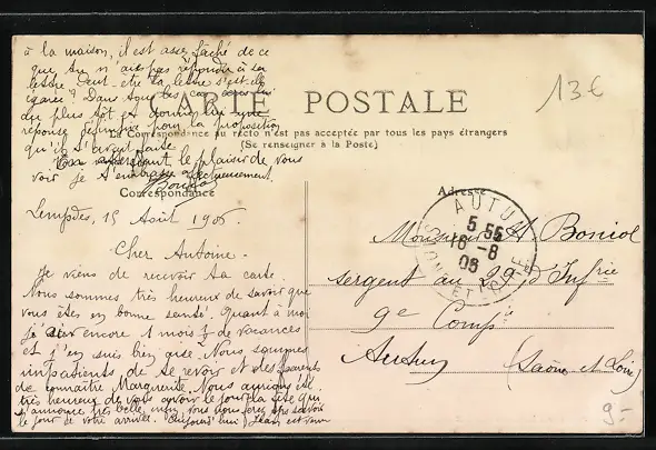 Personenbezogene Daten auf der Rückseite der Karte wurden durch blauen Textmarker unkenntlich gemacht. Die blauen Stellen sind auf die Vorderseite durchgeweicht und wirken sich negativ auf das Postkartenfoto aus