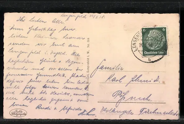 alte Ansichtskarte, gelaufen 1938, Eckknick li. oben, guter Zustand