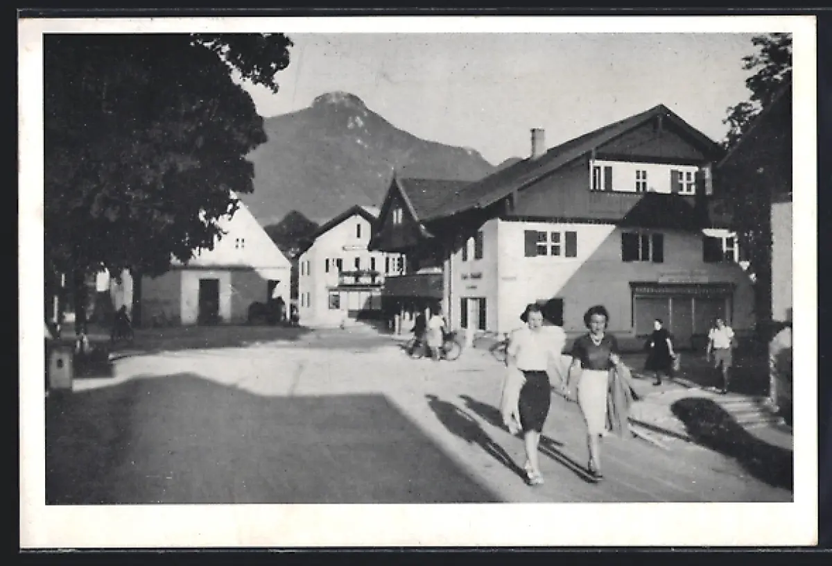 AK Lenggries, Geigerstein, Strassenpartie mit Geschäft