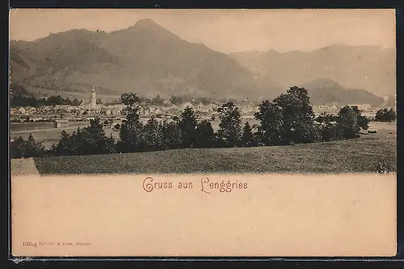 AK Lenggries, Ortsansicht gegen die Berge