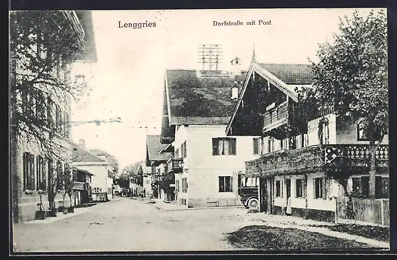 AK Lenggries, Partie an der Dorfstrasse mit Post