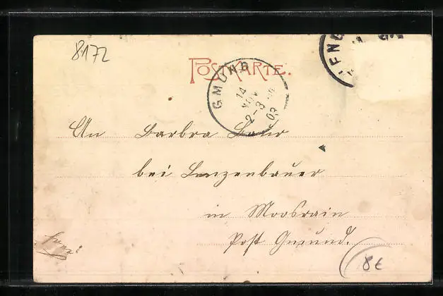 alte Ansichtskarte, gelaufen 1903, Briefmarke entfernt, rückseitig Oberflächenschaden, guter Zustand