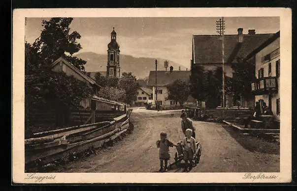 AK Lenggries a. d. Isar, Dorfstrasse mit Kindern