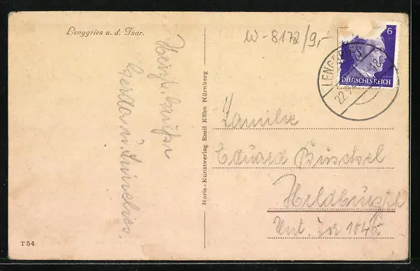 alte Ansichtskarte, gelaufen 1942, Briefmarke tw. entfernt, rückseitig Oberflächenschaden, Eckknicke links u. rechts, guter Zustand