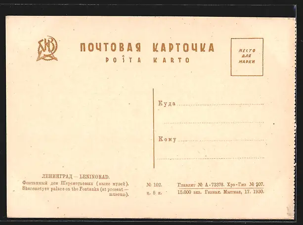AK Leningrad, Sheremetyev palace on the Fontanka