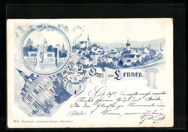 AK Lennep, Ortsansicht mit Denkmal, Neues Rathaus