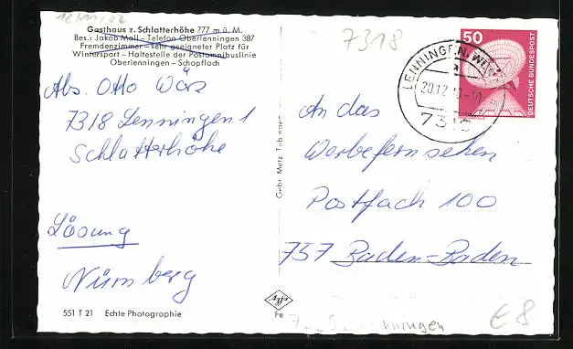 Weitere Ansichtskarten zur Postleitzahl 73252