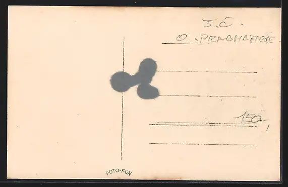 Personenbezogene Daten auf der Rückseite der Karte wurden durch blauen Textmarker unkenntlich gemacht. Die blauen Stellen sind auf die Vorderseite durchgeweicht und wirken sich negativ auf das Postkartenfoto aus