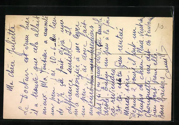 Personenbezogene Daten auf der Rückseite der Karte wurden durch blauen Textmarker unkenntlich gemacht. Die blauen Stellen sind auf die Vorderseite durchgeweicht und wirken sich negativ auf das Postkartenfoto aus