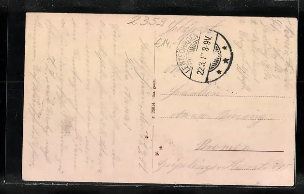 alte Ansichtskarte, gelaufen 1917, Eckknicke li. oben und re. unten, guter Zustand