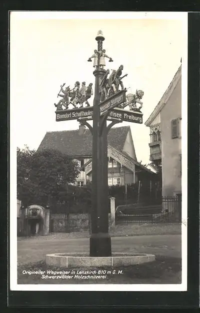 AK Lenzkirch, Ortspartie mit Wegweiser