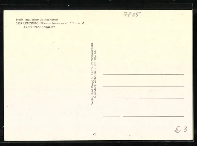 Personenbezogene Daten auf der Rückseite der Karte wurden durch blauen Textmarker unkenntlich gemacht. Die blauen Stellen sind auf die Vorderseite durchgeweicht und wirken sich negativ auf das Postkartenfoto aus