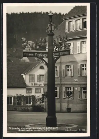 AK Lenzkirch, Wegweiser, Schwarzwälder Holzschnitzerei