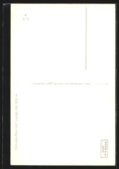 Personenbezogene Daten auf der Rückseite der Karte wurden durch blauen Textmarker unkenntlich gemacht. Die blauen Stellen sind auf die Vorderseite durchgeweicht und wirken sich negativ auf das Postkartenfoto aus