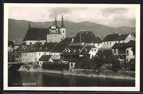 AK Leoben, Altstadt, Ortspartie am Fluss