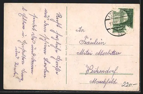 alte Ansichtskarte, gelaufen 1938, Briefmarke entfernt, guter Zustand