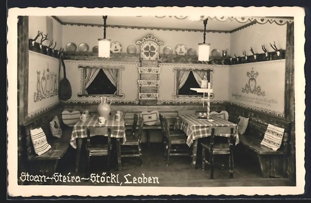 AK Leoben, Gaststätte Stoan-Steira-Stöckl, Nische mit zwei Tischen