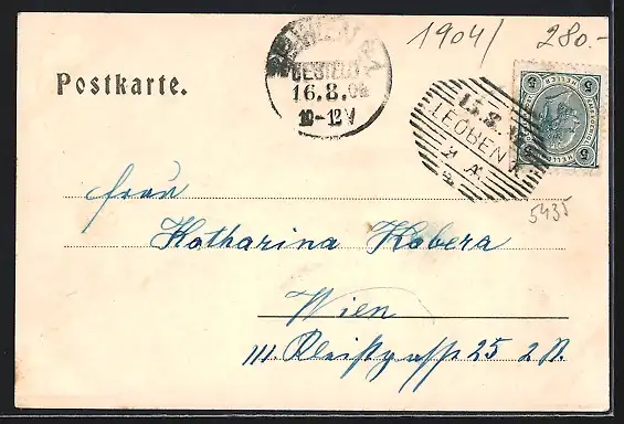 alte Ansichtskarte, gelaufen 1904, guter Zustand