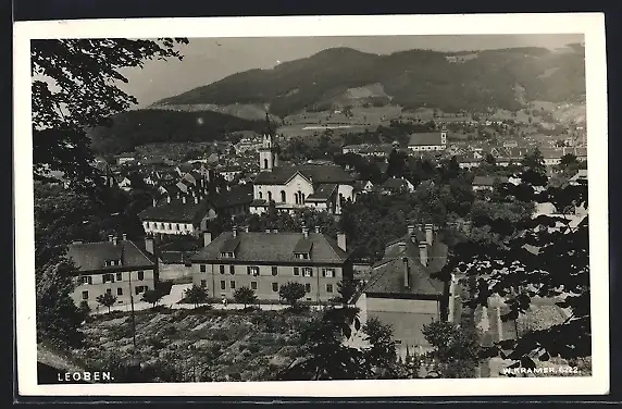 AK Leoben, Gesamtansicht mit der Kirche aus der Vogelschau