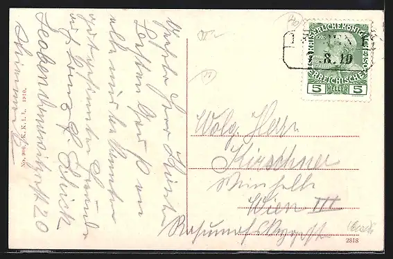 gelaufen 1910, Eckknick li. oben, guter Zustand