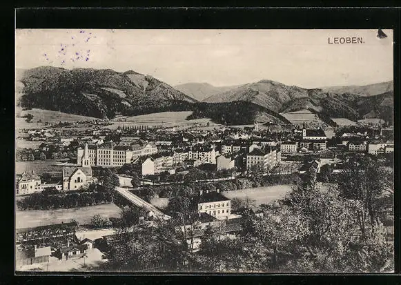 AK Leoben, Ortsansicht aus der Vogelschau