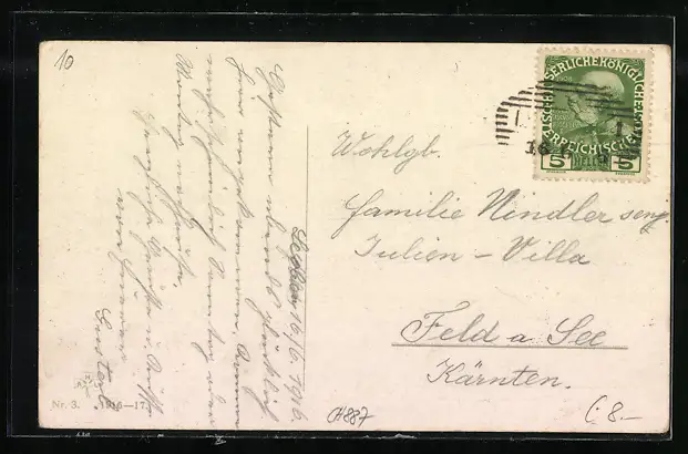 gelaufen 1916, Eckknick re. unten, guter Zustand