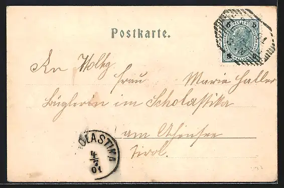 alte Ansichtskarte, gelaufen 1901, guter Zustand