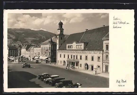 AK Leoben, platz mit Rathaus aus der Vogelschau