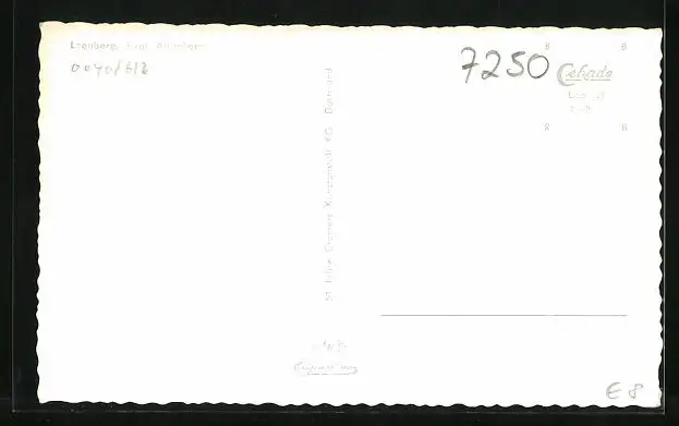 Personenbezogene Daten auf der Rückseite der Karte wurden durch blauen Textmarker unkenntlich gemacht. Die blauen Stellen sind auf die Vorderseite durchgeweicht und wirken sich negativ auf das Postkartenfoto aus