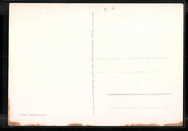 Personenbezogene Daten auf der Rückseite der Karte wurden durch blauen Textmarker unkenntlich gemacht. Die blauen Stellen sind auf die Vorderseite durchgeweicht und wirken sich negativ auf das Postkartenfoto aus