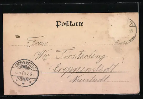 alte Ansichtskarte, gelaufen 1900, Briefmarke entfernt, rückseitig Oberflächenschaden, guter Zustand