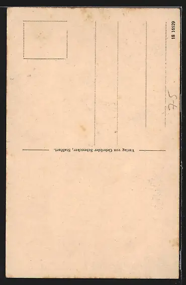 Personenbezogene Daten auf der Rückseite der Karte wurden durch blauen Textmarker unkenntlich gemacht. Die blauen Stellen sind auf die Vorderseite durchgeweicht und wirken sich negativ auf das Postkartenfoto aus