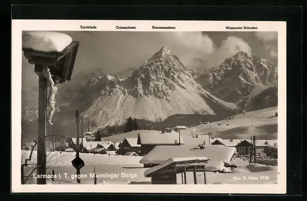 AK Lermoos, Ansicht gegen Mieminger Berge im Schnee