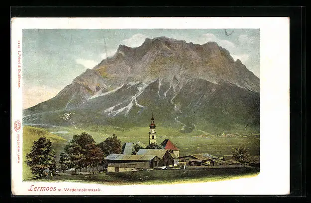 AK Lermoos, Ortsansicht mit Wettersteinmassiv
