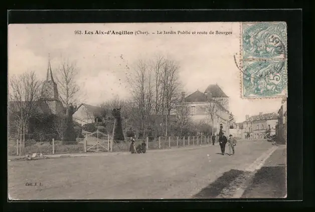 AK Les Aix-d`Angillon, Le Jardin Public et route de Bourges