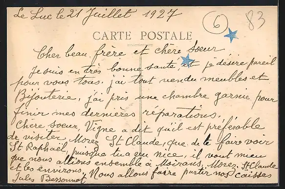 ungelaufen, Rückseite beschrieben 1927, guter Zustand