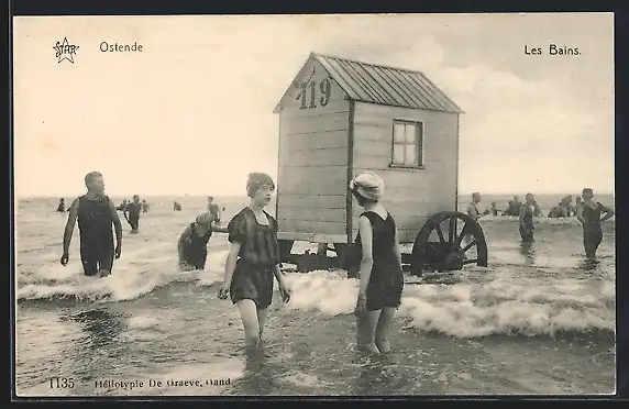 AK Les Bains, Frauen in Badeanzug im flachen Wasser