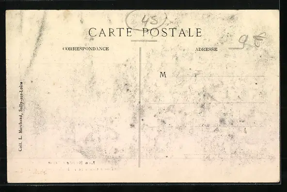Personenbezogene Daten auf der Rückseite der Karte wurden durch blauen Textmarker unkenntlich gemacht. Die blauen Stellen sind auf die Vorderseite durchgeweicht und wirken sich negativ auf das Postkartenfoto aus