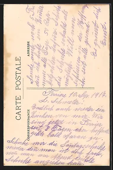 ungelaufen, Rückseite beschrieben 1917, guter Zustand