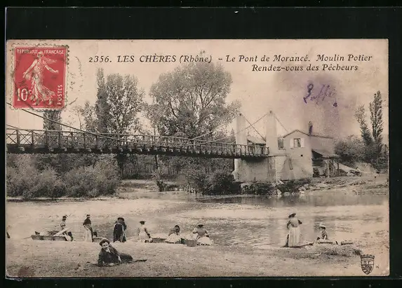 AK Les Chères, Le Pont de Morancé, Moulin Potier, Rendez-vous des Pecheurs