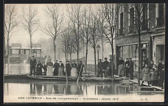 AK Les Coteaux, Inondations Janvier 1910, Rue de Longchamps