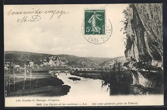 AK Les Eyzies, Vue générale prise de l`Ouest