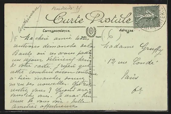 Personenbezogene Daten auf der Rückseite der Karte wurden durch blauen Textmarker unkenntlich gemacht. Die blauen Stellen sind auf die Vorderseite durchgeweicht und wirken sich negativ auf das Postkartenfoto aus