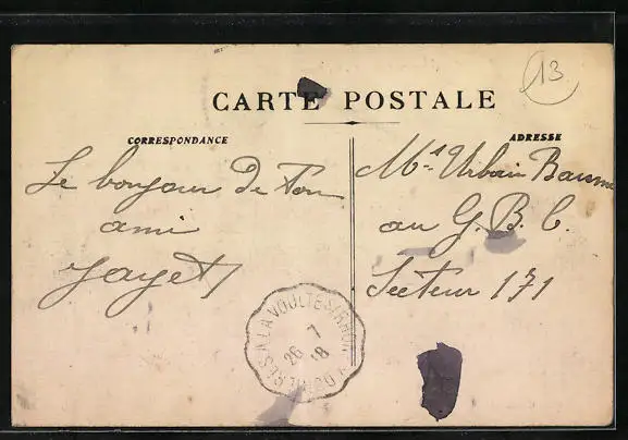 alte Ansichtskarte, gelaufen als Feldpost 1918, guter Zustand
