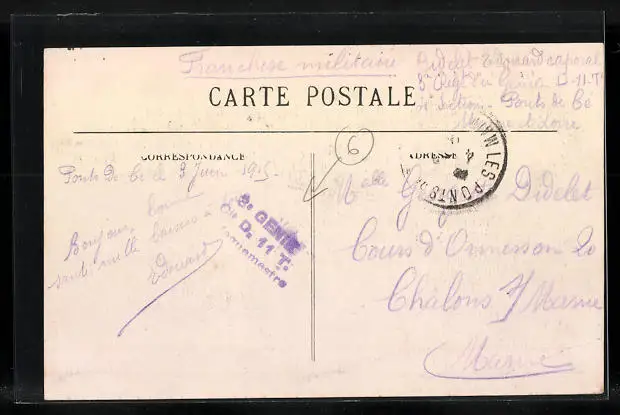 Personenbezogene Daten auf der Rückseite der Karte wurden durch blauen Textmarker unkenntlich gemacht. Die blauen Stellen sind auf die Vorderseite durchgeweicht und wirken sich negativ auf das Postkartenfoto aus